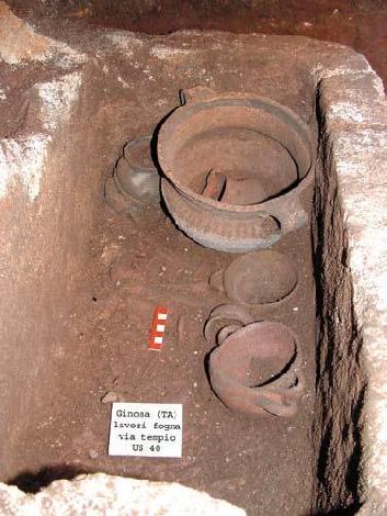 | cantiere fogna – sito 5 Ginosa Via Tempio | stratigrafie di età magnogreca e peuceta strutture edilizie e necropoli | ||||